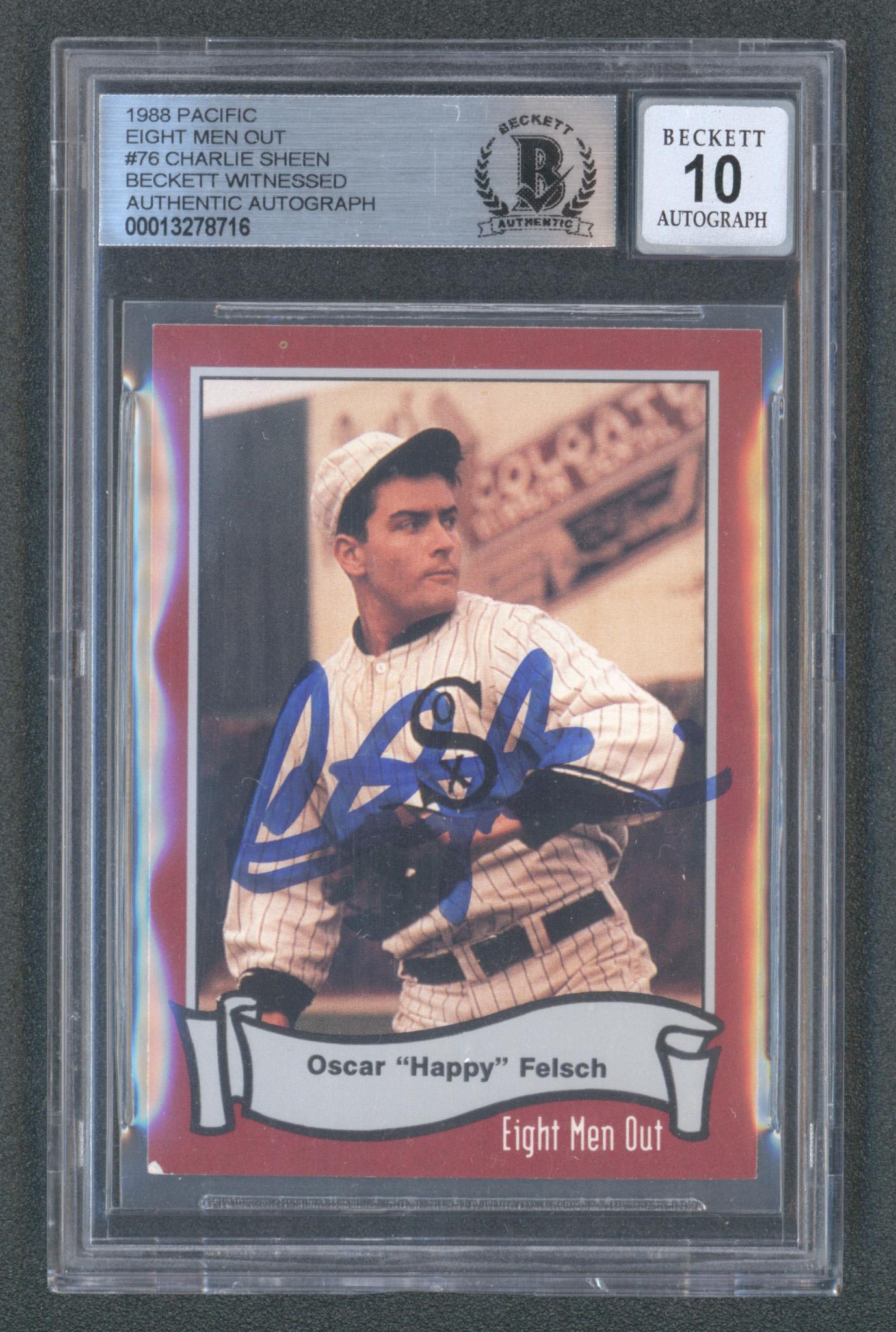 Charlie Sheen Signed 1988 Pacific Eight Men Out #76 (BGS | Autograph Grade 10)