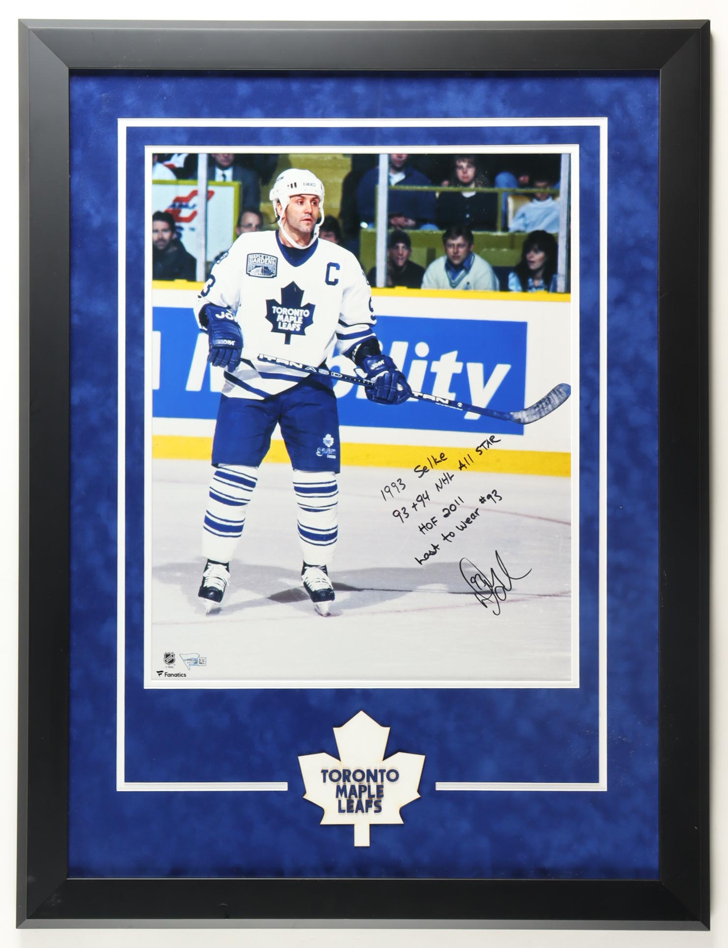 Custom framed display measures approximately 36" x 44" in size. Hand-signed and inscribed by Doug Gilmour (Toronto Maple Leafs, HOF).