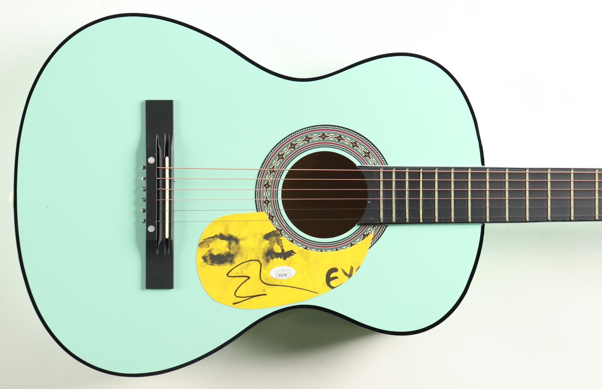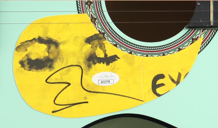 Acoustic guitar measures approximately 38" in length and has been hand-signed on the pick-guard by Ed Sheeran.