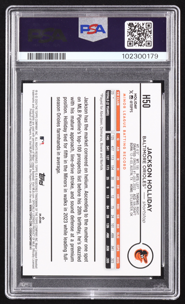 Jackson Holliday 2024 Topps Holiday #H50 RC (PSA 10)