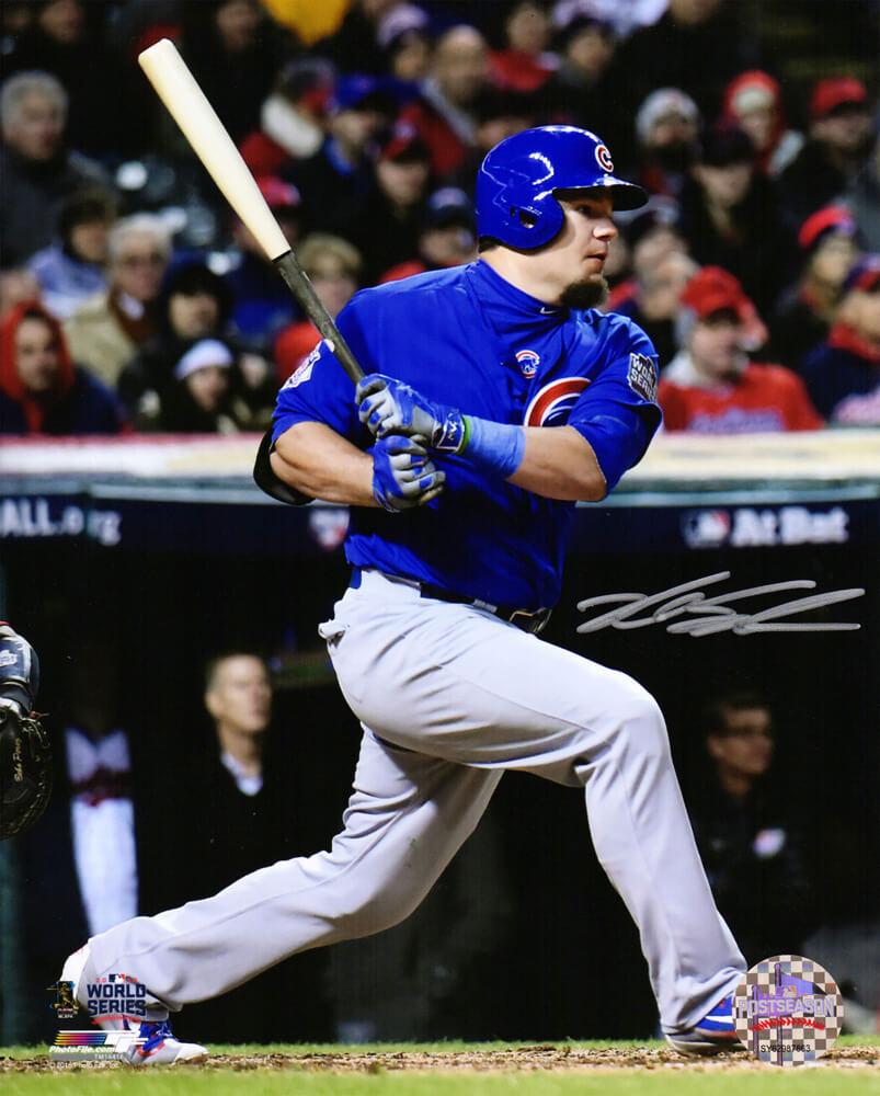 Photo measures 8" x 10" in size and has been hand-signed by Kyle Schwarber (Chicago Cubs).