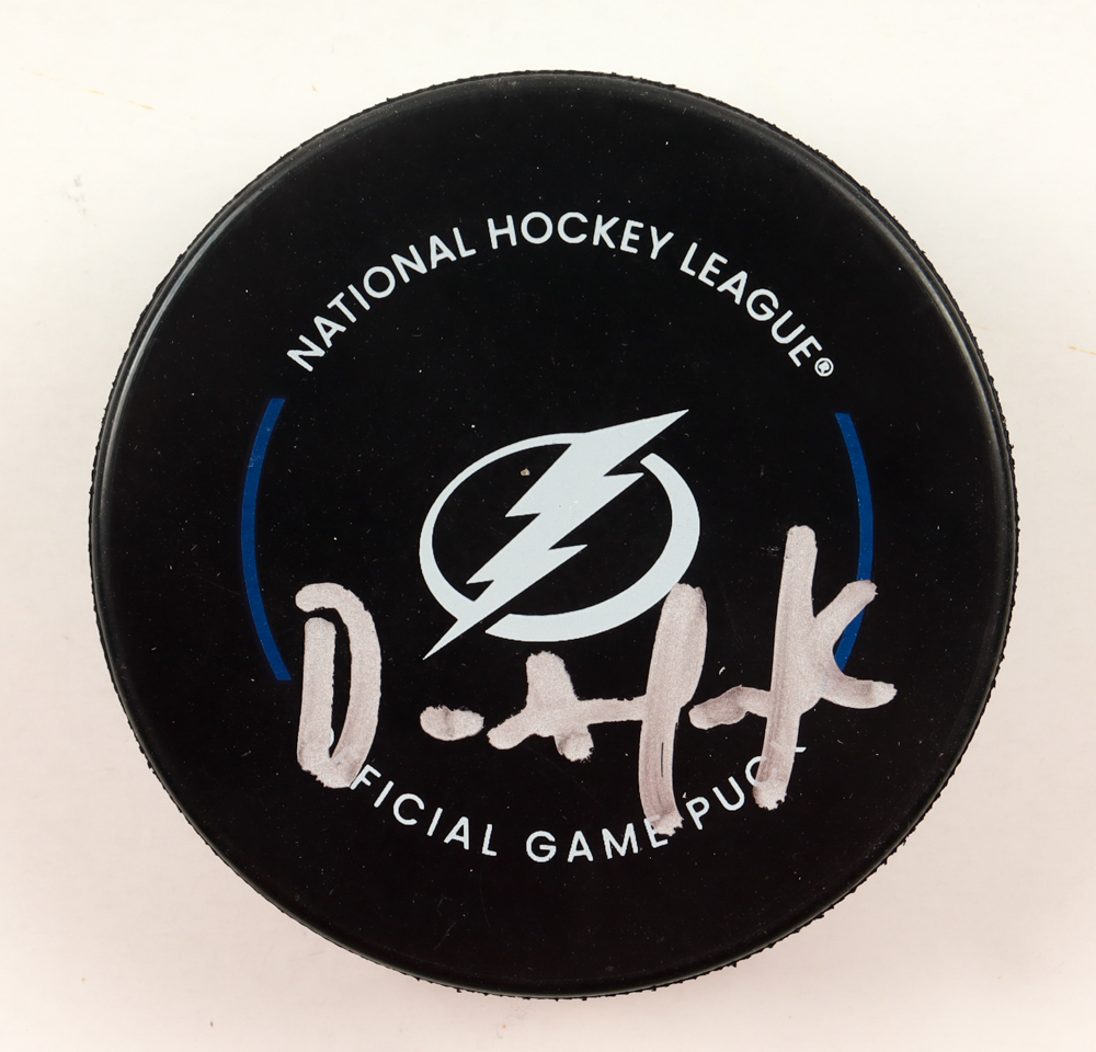 Tampa Bay Lightning logo hockey puck. Hand-signed by Dave Andreychuk (HOF).