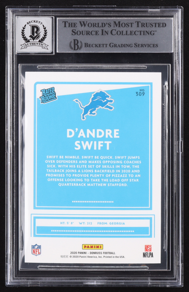D'Andre Swift Signed 2020 Donruss #309 RR RC (BGS)