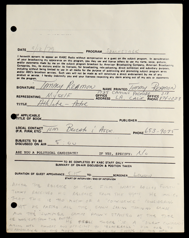 Tommy Reamon Signed 1979 KABC Radio Contract (PSA)