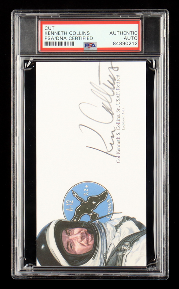 Up for auction is an extraordinary piece of aviation history: a signed cut signature of A-12 pilot Kenneth Collins, encapsulated and authenticated by PSA/DNA authentication services.