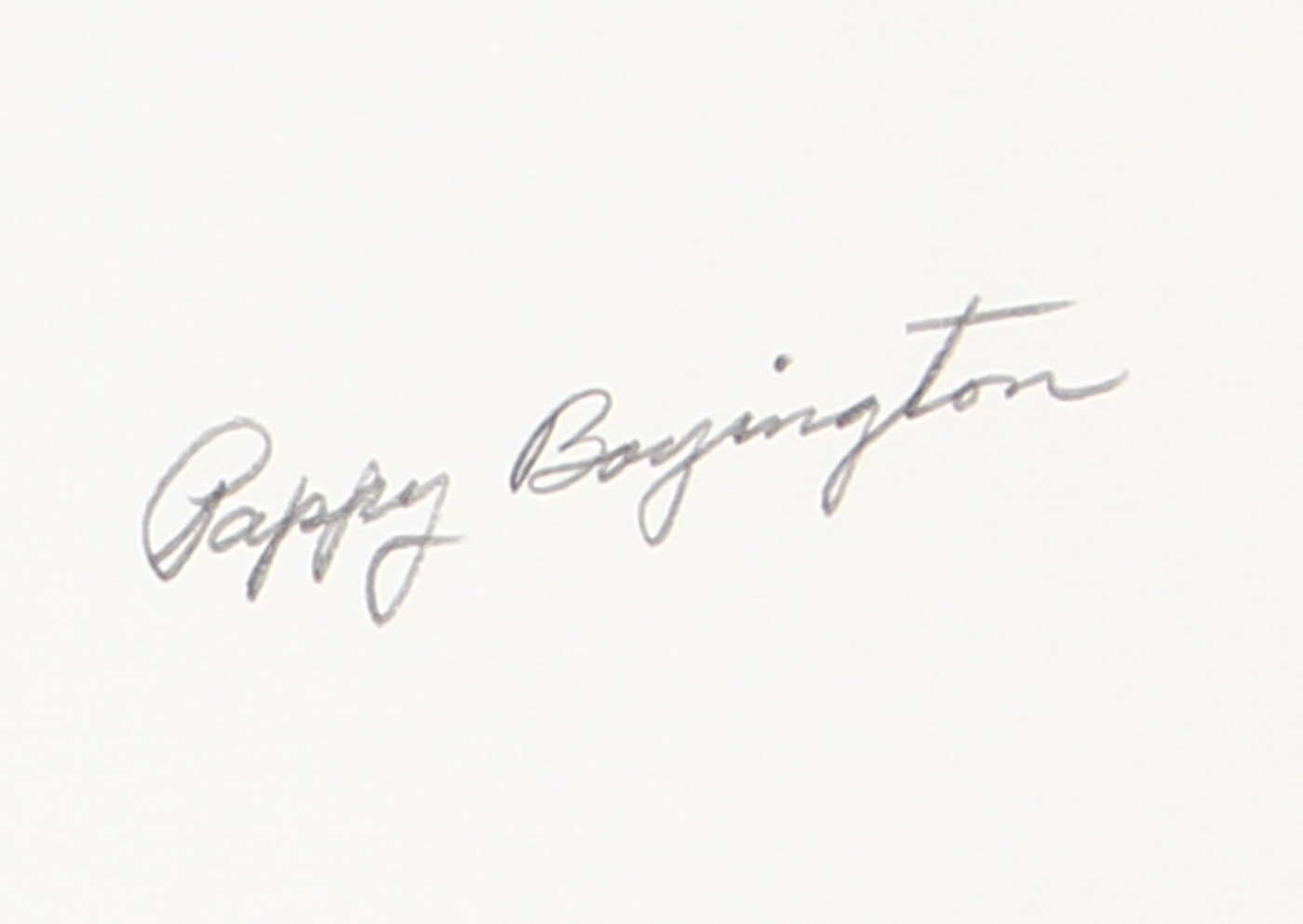 Lithograph measures 10" x 11" in size and has been hand-signed in pencil by Pappy Boyington. Please note, the edges of the lithograph have slight damage but will not be visible once framed.