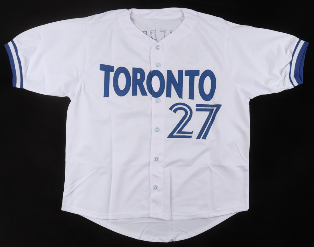 Custom jersey. Everything is sewn on, size XL. Hand-signed by Vladimir Guerrero Jr.