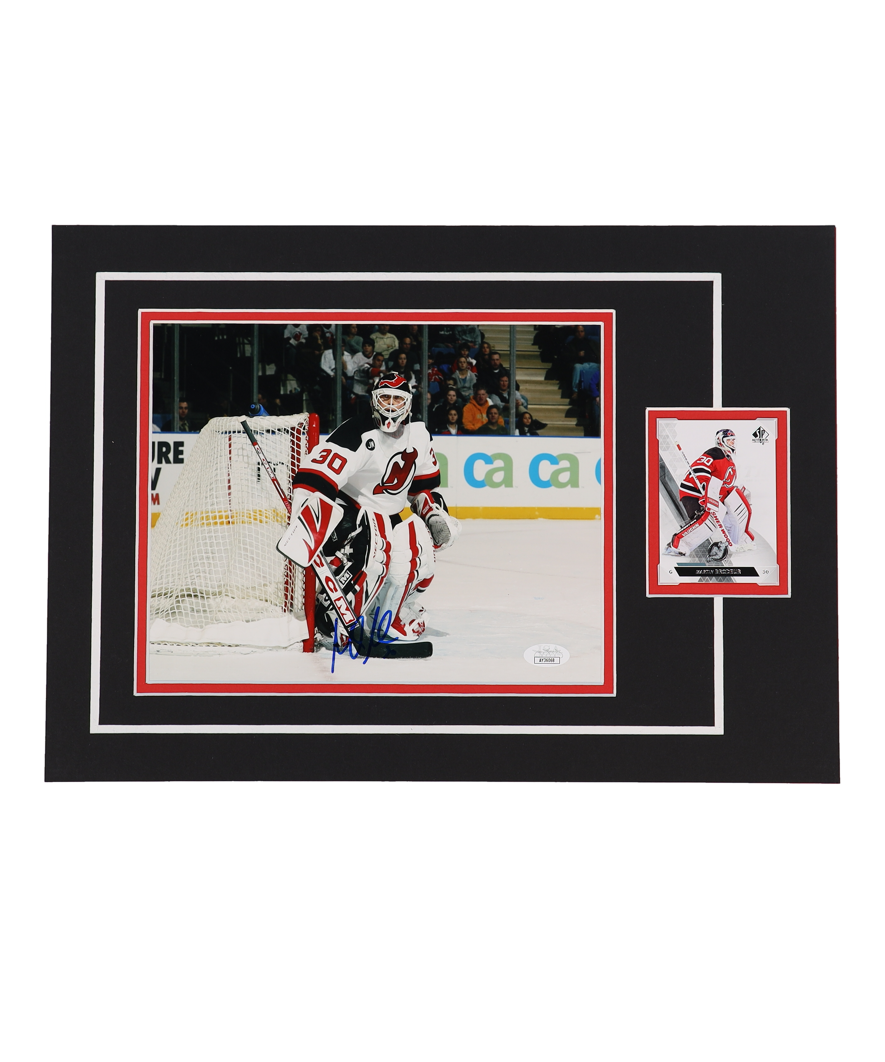 Custom lithograph measures 14" x 18" in size. Photo measures approximately 8" x 10" in size, hand-signed by Martin Brodeur (New Jersey Devils, HOF). Please note that the sports card is included as shown.