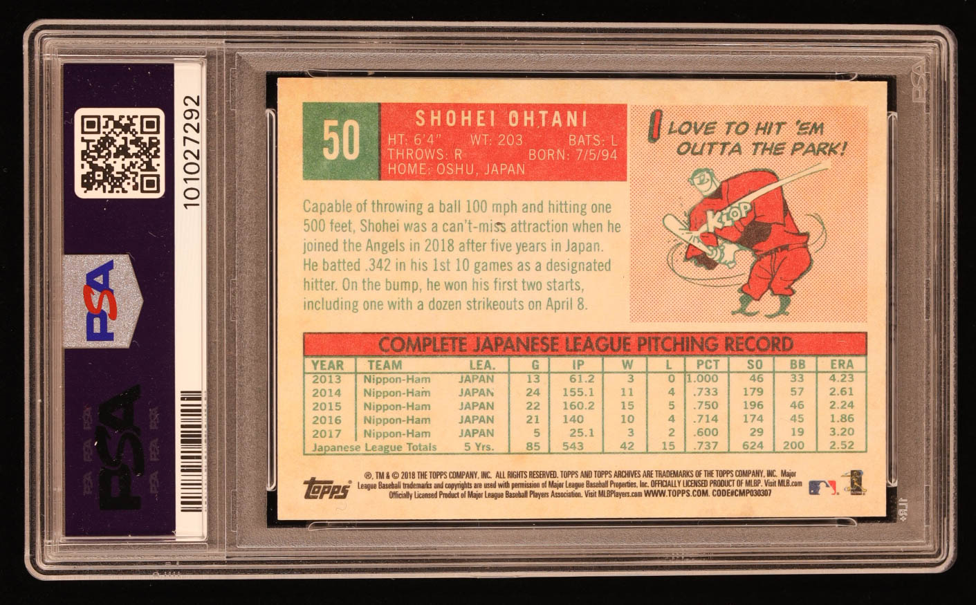Shohei Ohtani 2018 Topps Archives #50 RC / Pitching Stance (PSA 10)