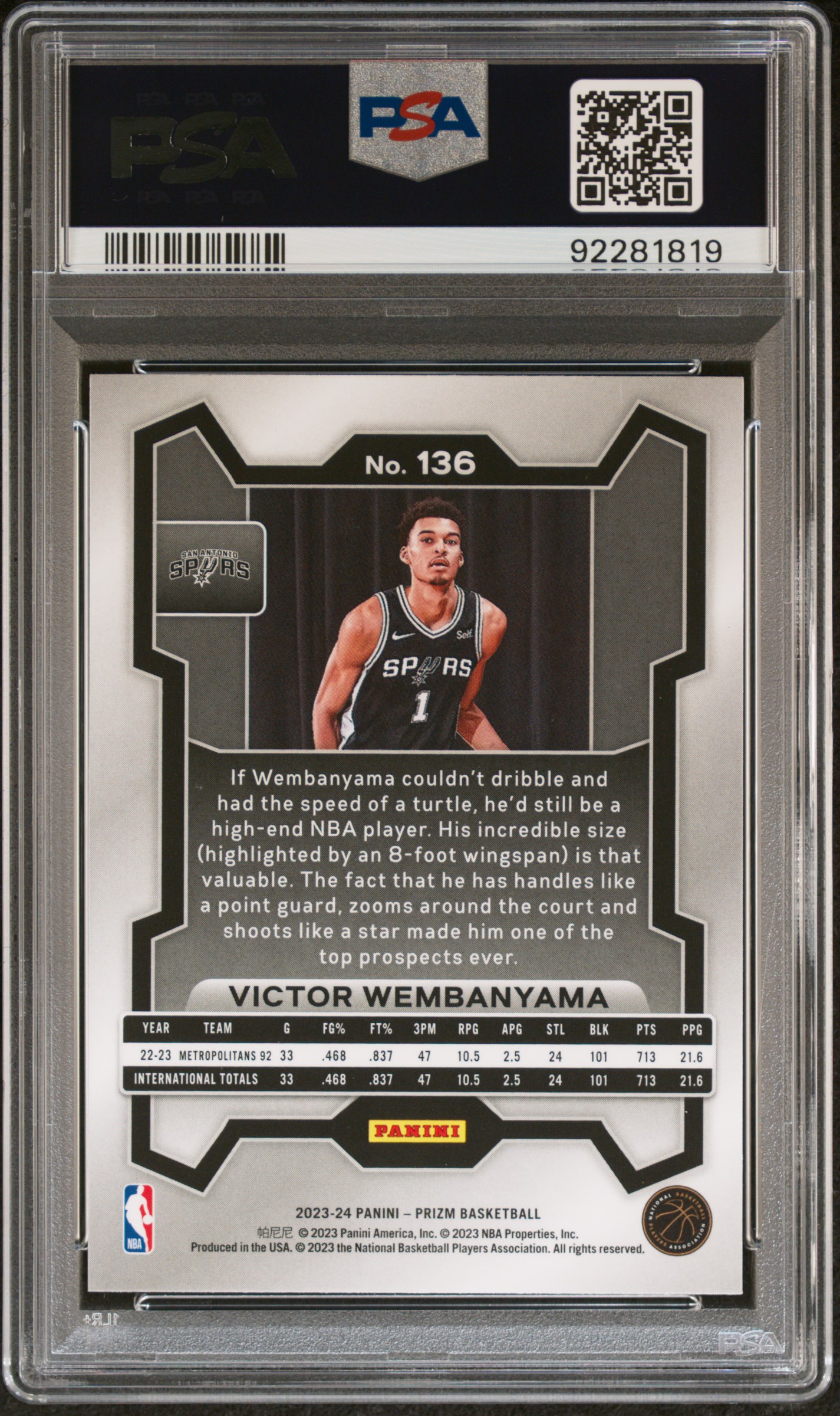 Victor Wembanyama 2023 Panini Prizm #136 RC (PSA 10)