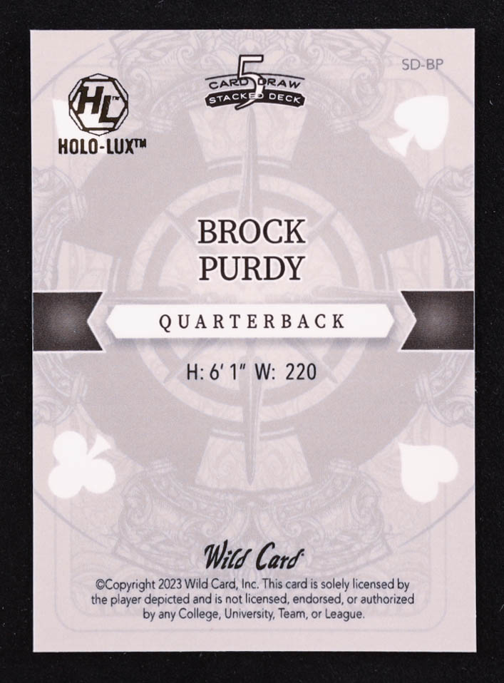 Brock Purdy 2023 Wild Card 5 Card Draw Stacked Deck Crystal Rainbow #SDBP #1/1