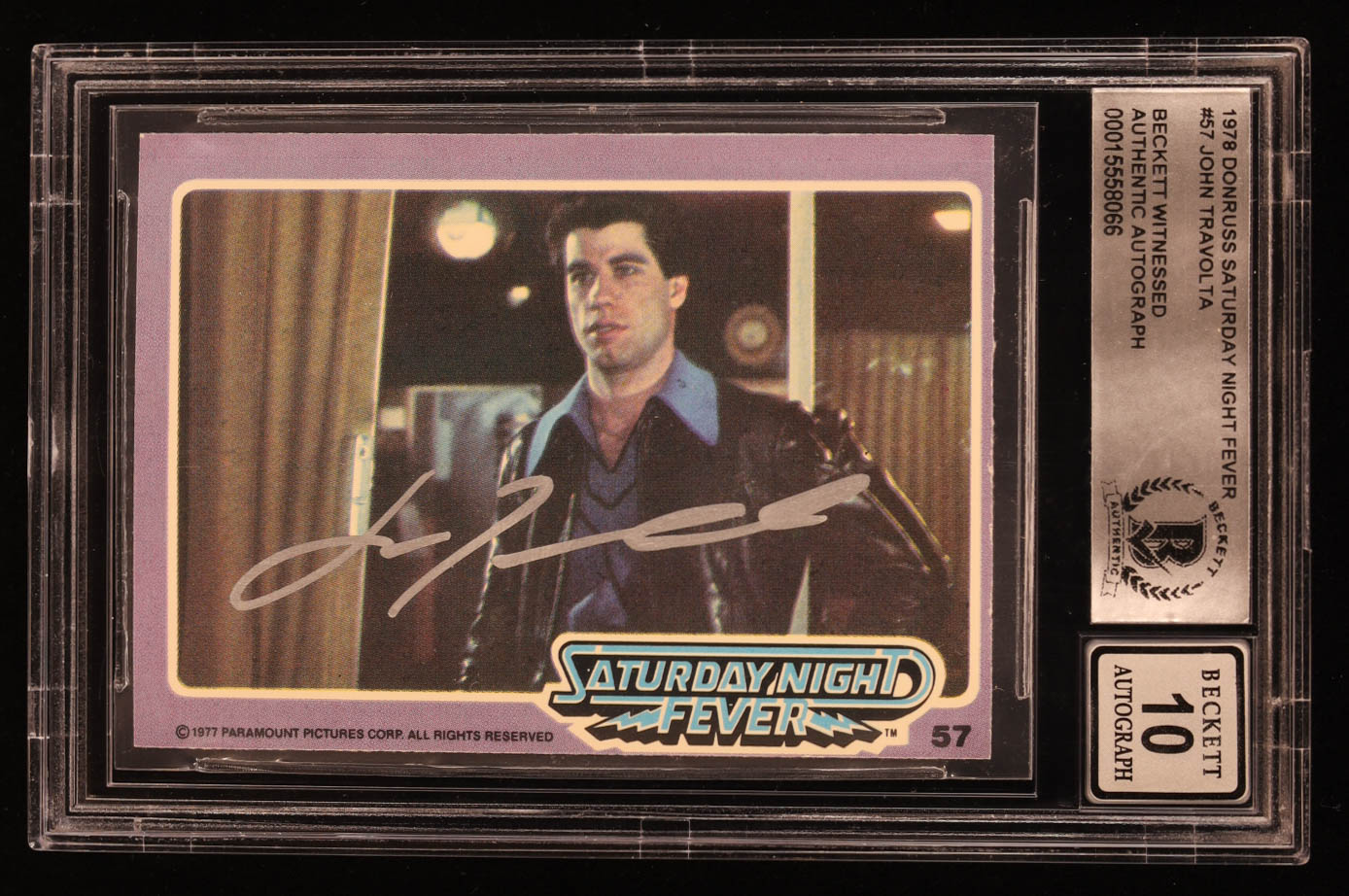 John Travolta Signed 1978 Donruss Saturday Night Fever #57 Travolta at Sliding Glass Doors (BGS | Auto 10)