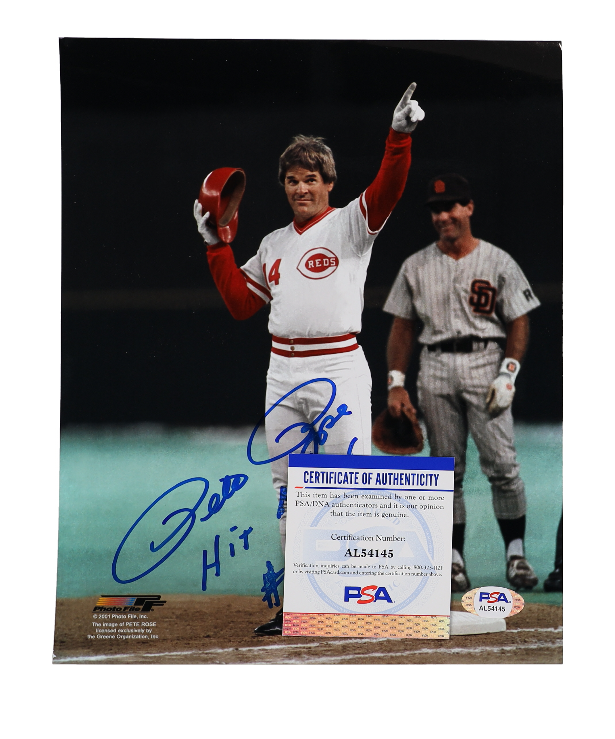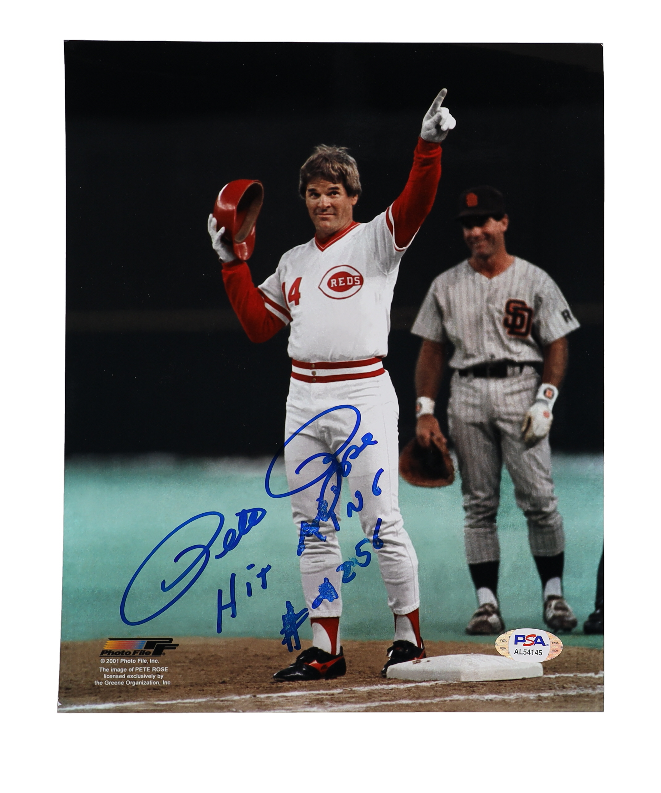 Pete Rose Signed 8x10 Photo Inscribed "HIt King" & "4256" (PSA)