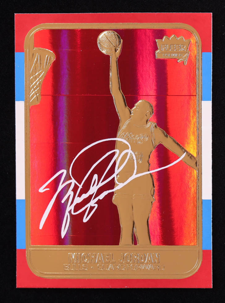 Michael Jordan 1997 Fleer Premier Signature Series Red Holo Refractor 23Kt Gold Card
