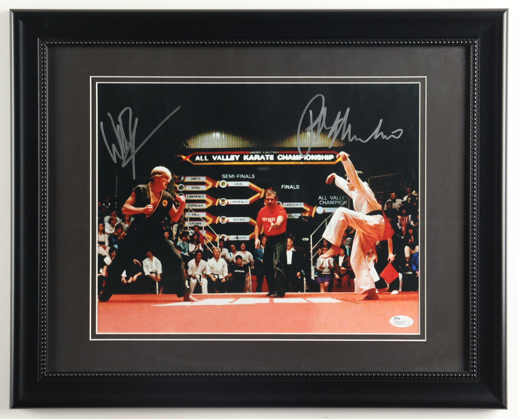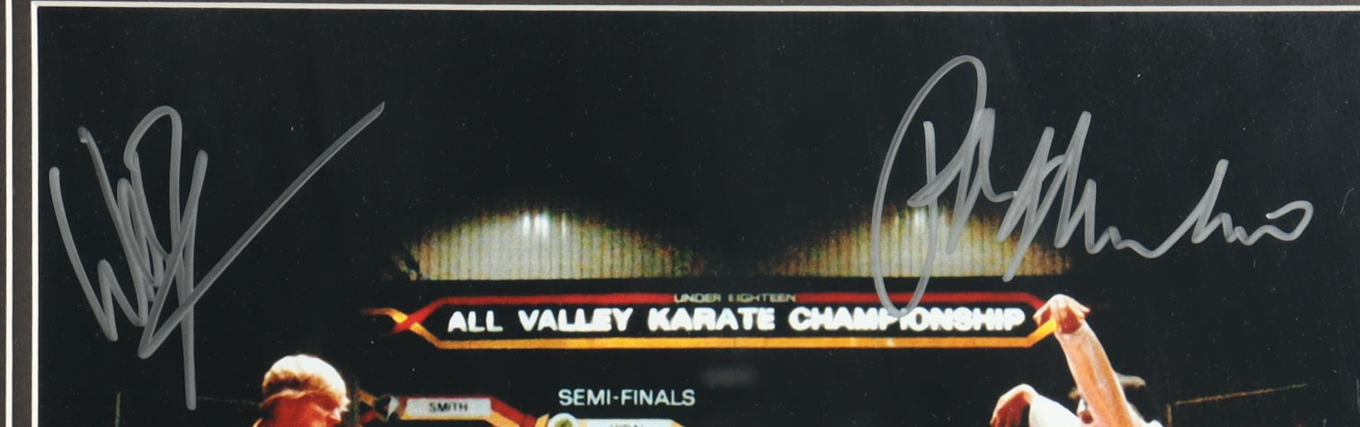 Custom frame measures approximately 16.5" x 21.5" in size and features a photo that has been hand-signed by Ralph Macchio (Daniel LaRusso) and William Zabka (Johnny Lawrence).