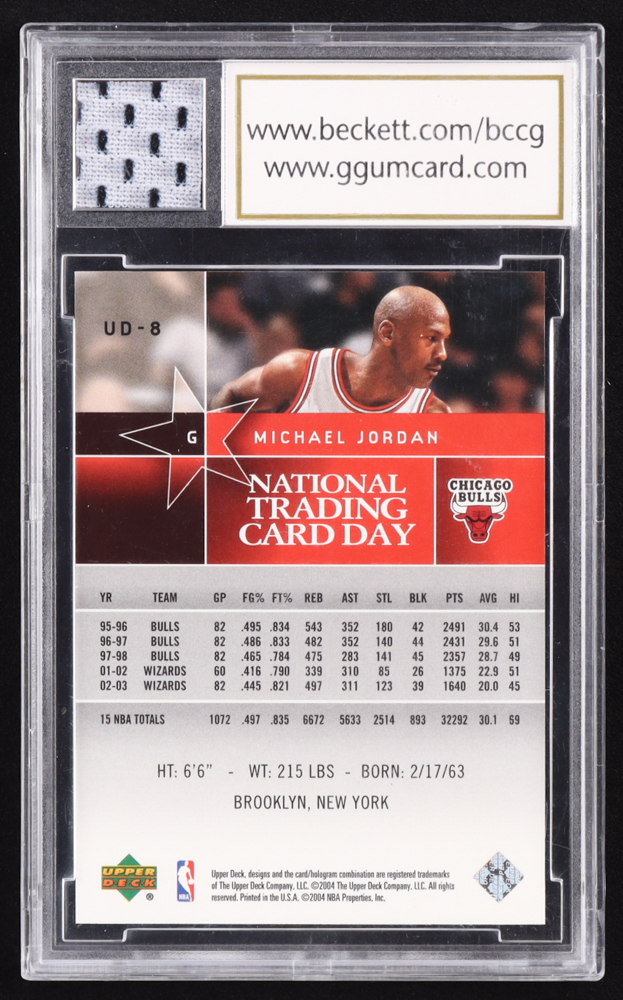 Michael Jordan 2004 National Trading Card Day #UD8 with Game-Used Jersey Piece (BCCG 10)