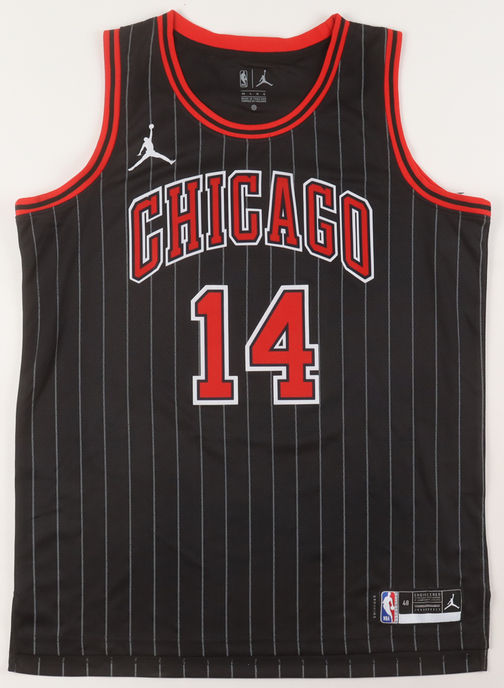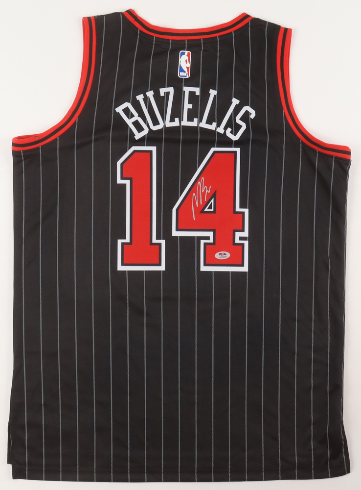 Jordan jersey with everything pressed on, size 48. Jersey has been hand-signed by Matas Buzelis.