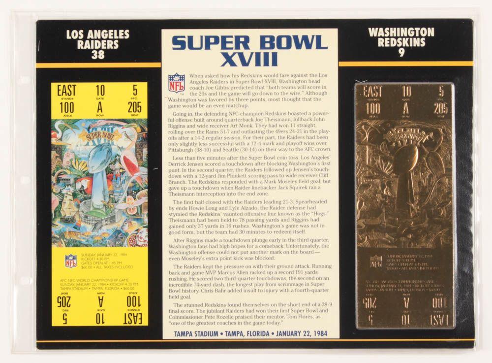 1984 Commemorative Super Bowl XVIII Card with Gold Ticket: Raiders vs Redskins