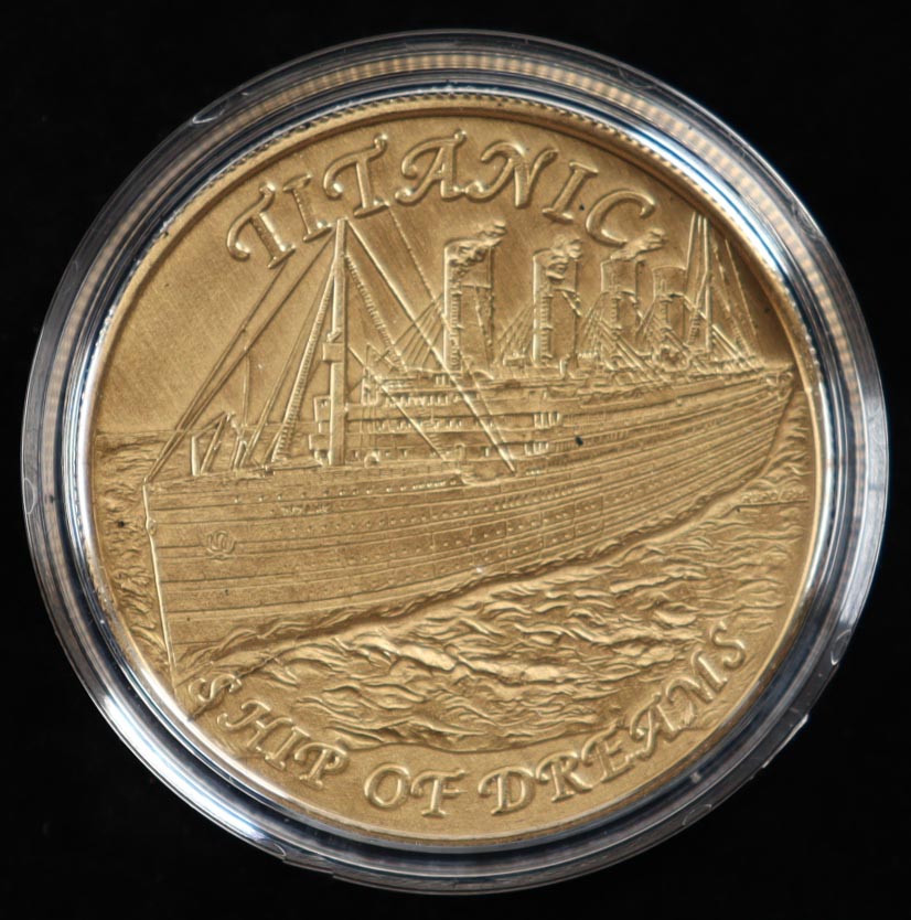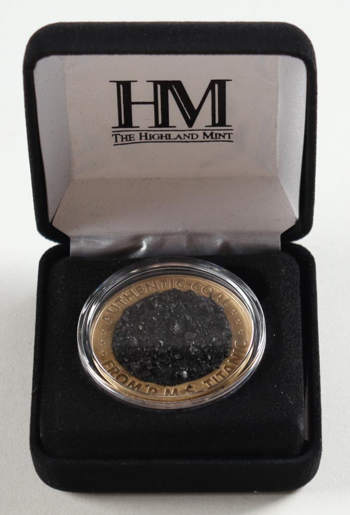 Highland Mint bronze coin Features coal recovered from the Titanic.