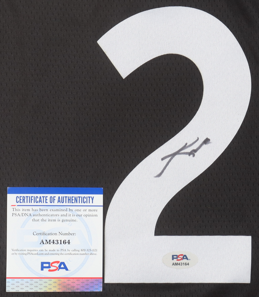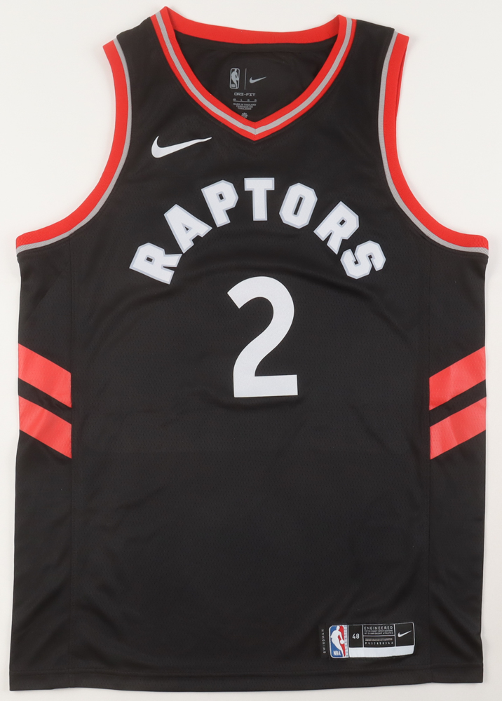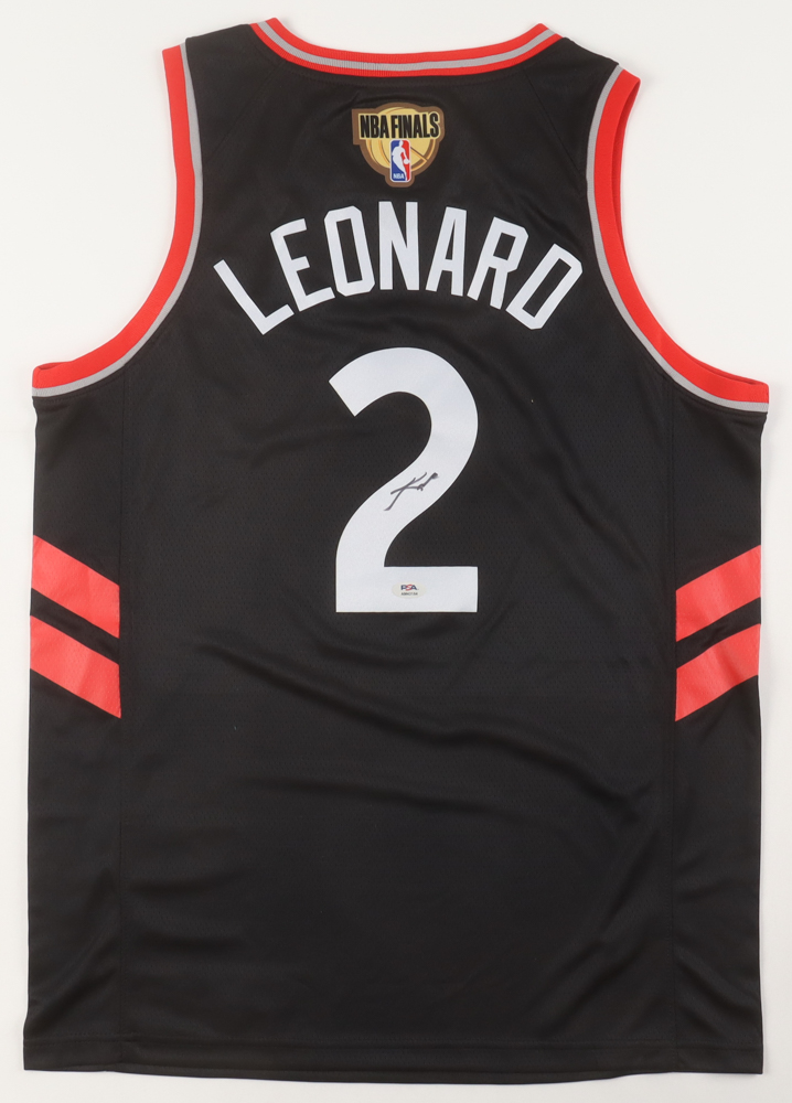 Nike jersey with everything pressed on, size 48. Hand-signed by Kawhi Leonard.