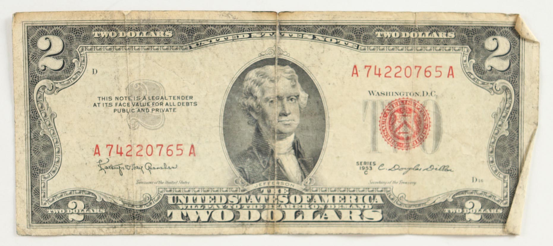 1953-C U.S. $2 Two Dollars Legal Tender Note - Red Seal
