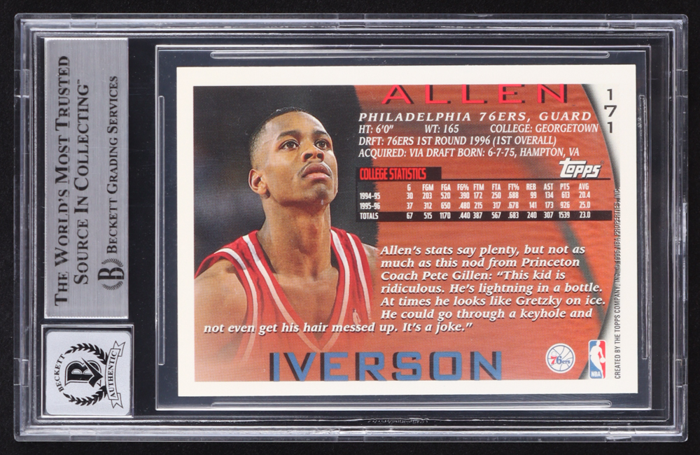 Allen Iverson Signed 1996-97 Topps #171 RC (BGS | Auto 10)