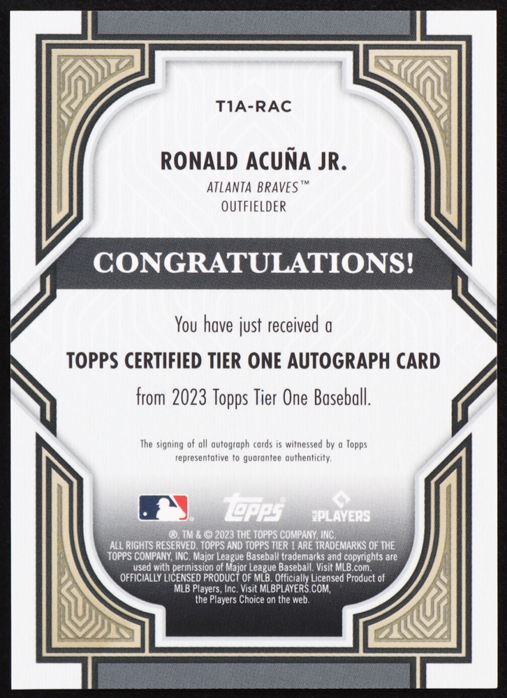 Ronald Acuna Jr. 2023 Topps Tier One Autographs #T1ARAC #20/75