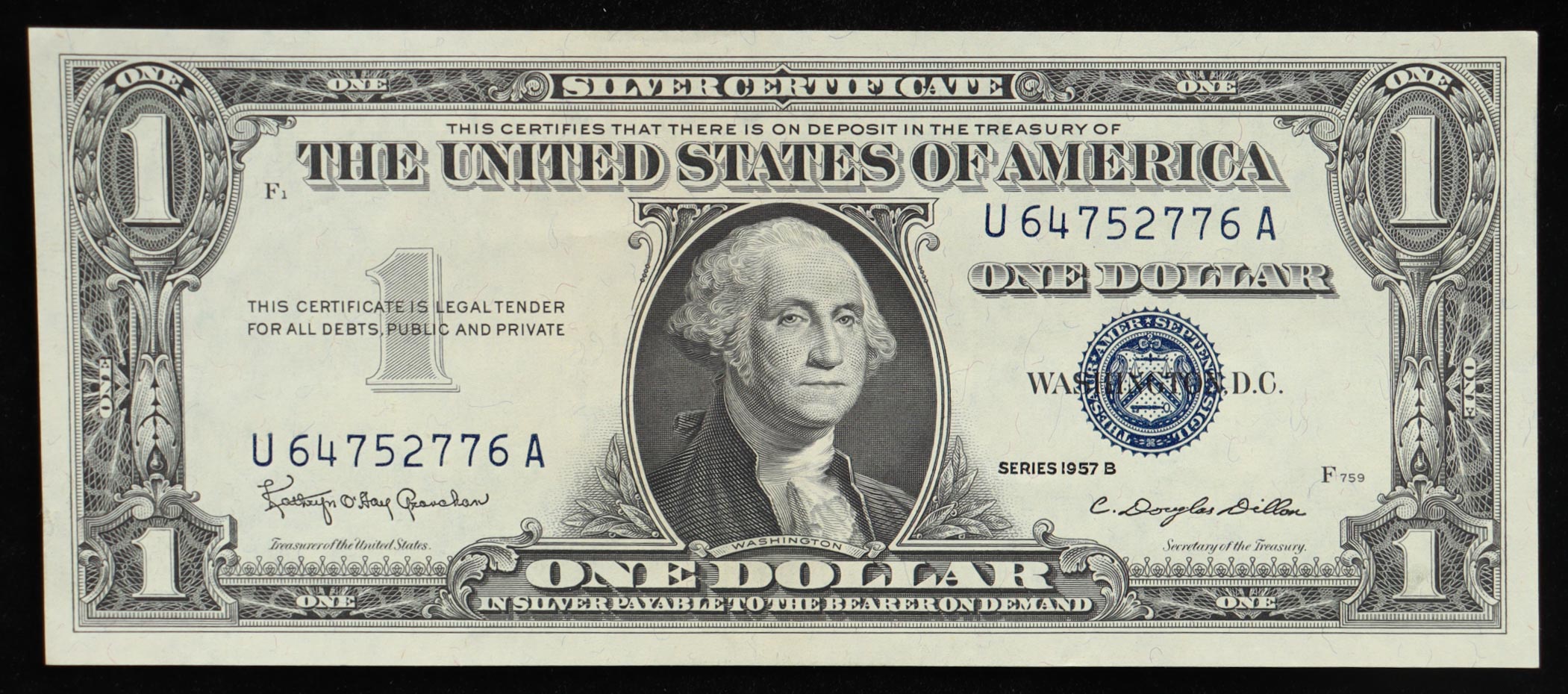 1957-B United States $1 One Dollar Silver Certificate - Blue Seal