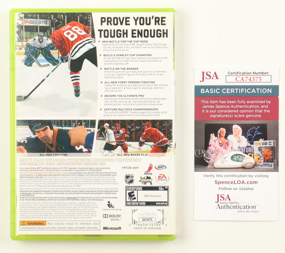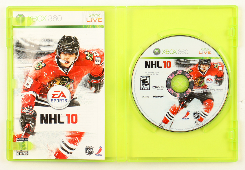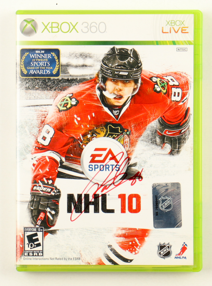 2009 Microsoft XBOX 360 EA Sports NHL '10 video game case. Hand-signed on the front by Patrick Kane (Chicago Blackhawks). Please note, there is some scuffing on the case and the game disc is included as shown.