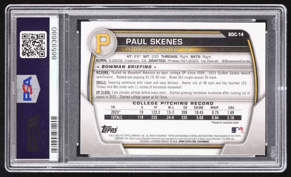 Paul Skenes 2023 Bowman Chrome Draft #BDC14 RC (PSA 10)