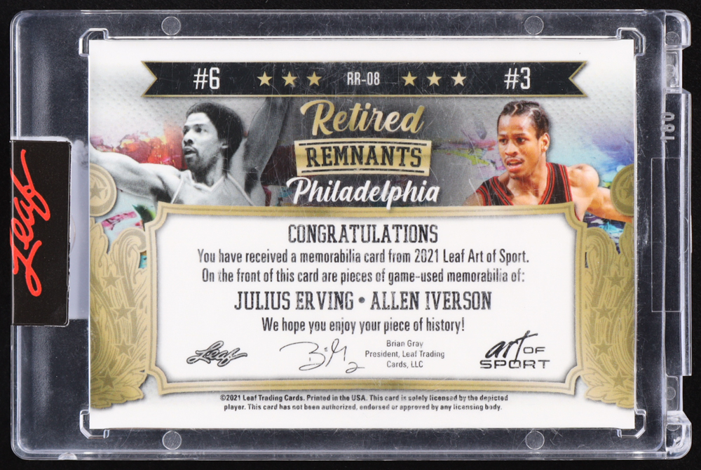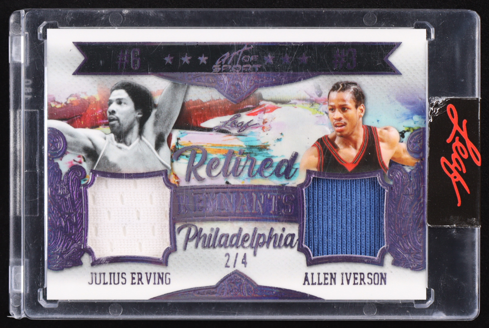 Julius Erving / Allen Iverson 2021 Leaf Art of Sport Retired Remnants Dual Memorabilia Purple #RR08 #2/4