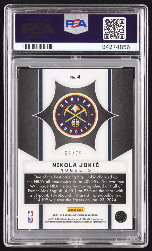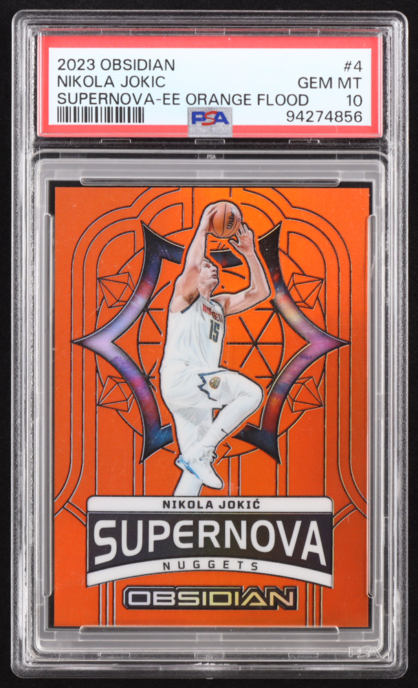 Nikola Jokic 2023-24 Panini Obsidian Supernova Electric Etch Orange Flood #4 #55/75 (PSA 10)
