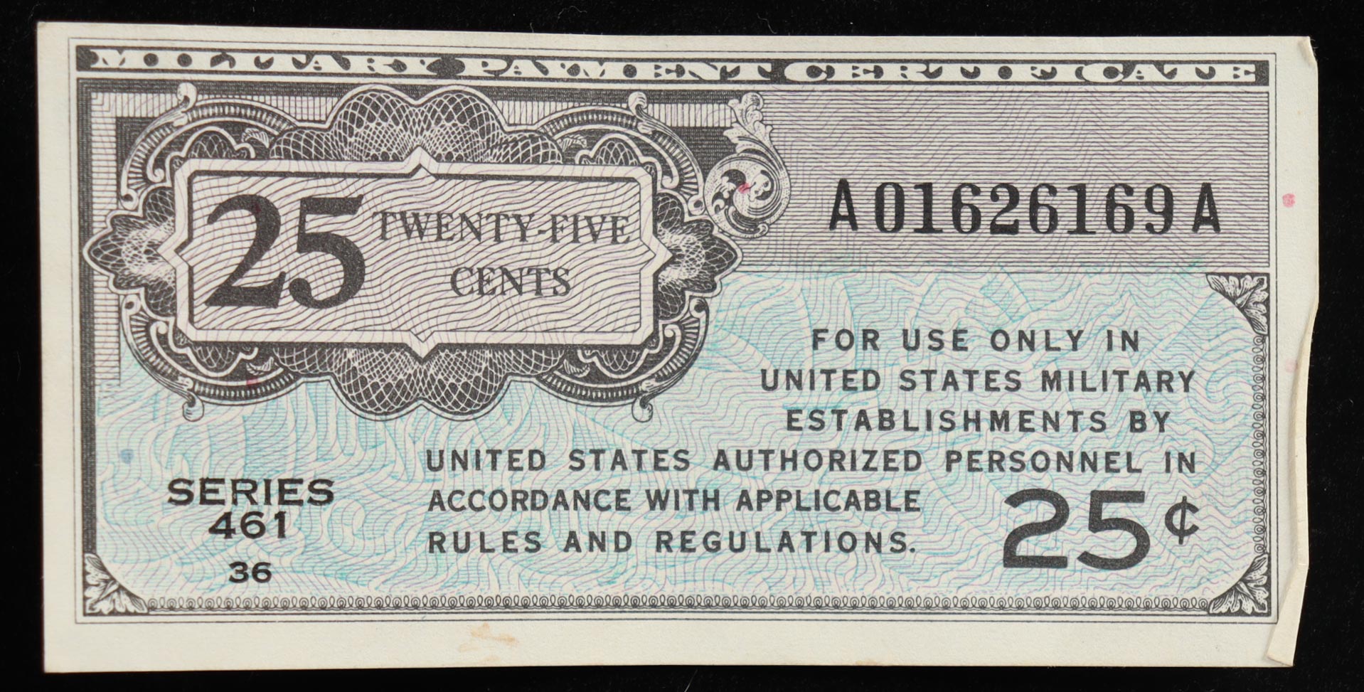 1946-47 U.S. Military Payment Certificate .25¢ - Series 461
