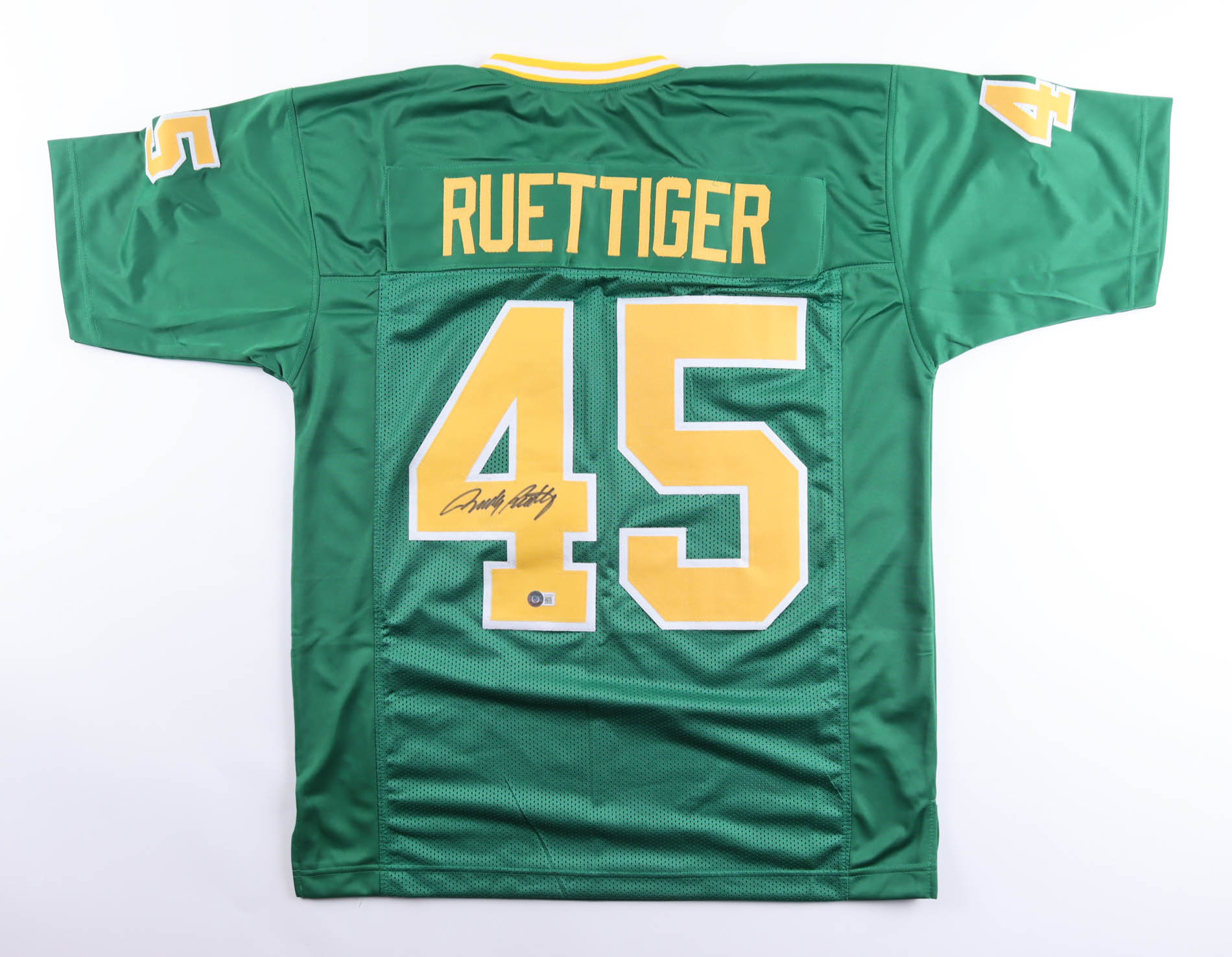 Custom jersey with everything sewn on, size XL. Hand-signed by Rudy Ruettiger.