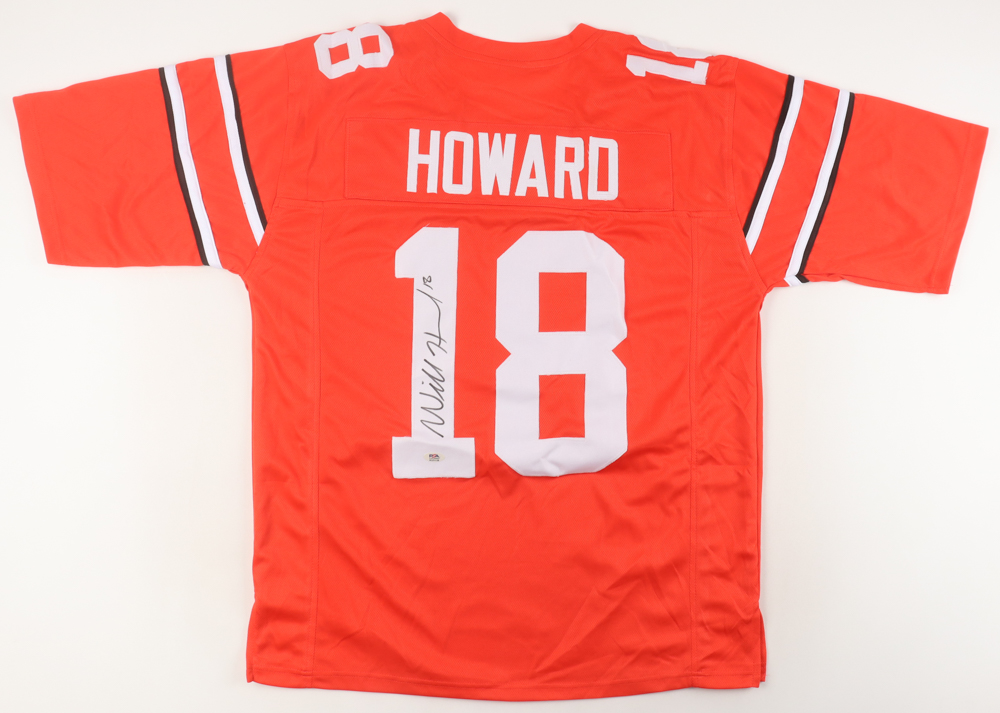 Custom jersey with everything sewn on, size XL. Hand-signed by Will Howard.