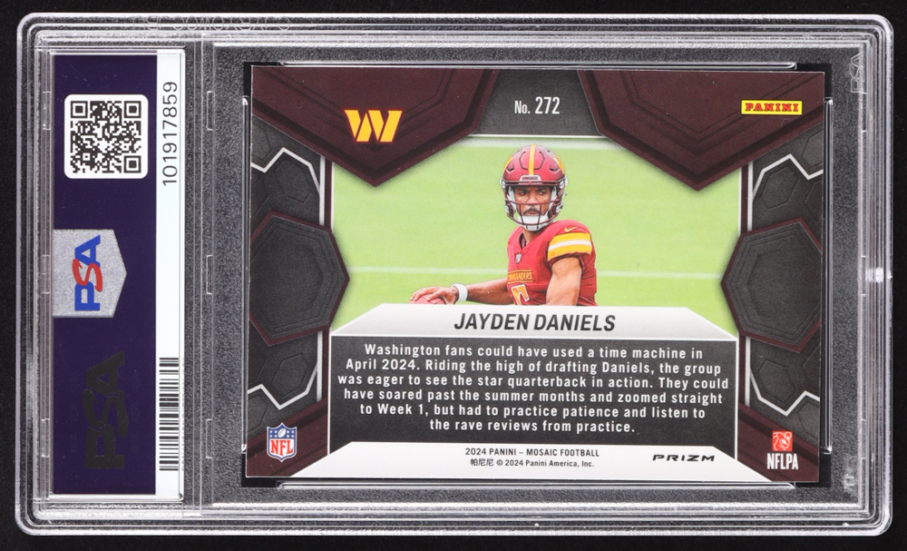 Jayden Daniels 2024 Panini Mosaic Mosaic Red #272 DEB RC (PSA 9)