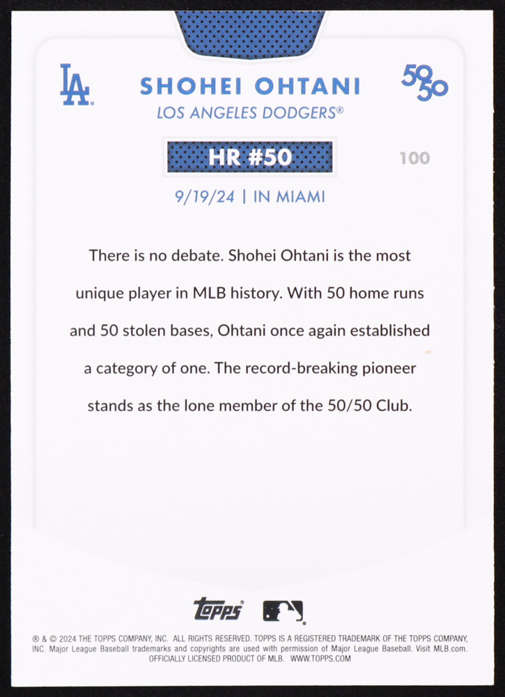Shohei Ohtani 2024 Topps 50/50 Ohtani #100