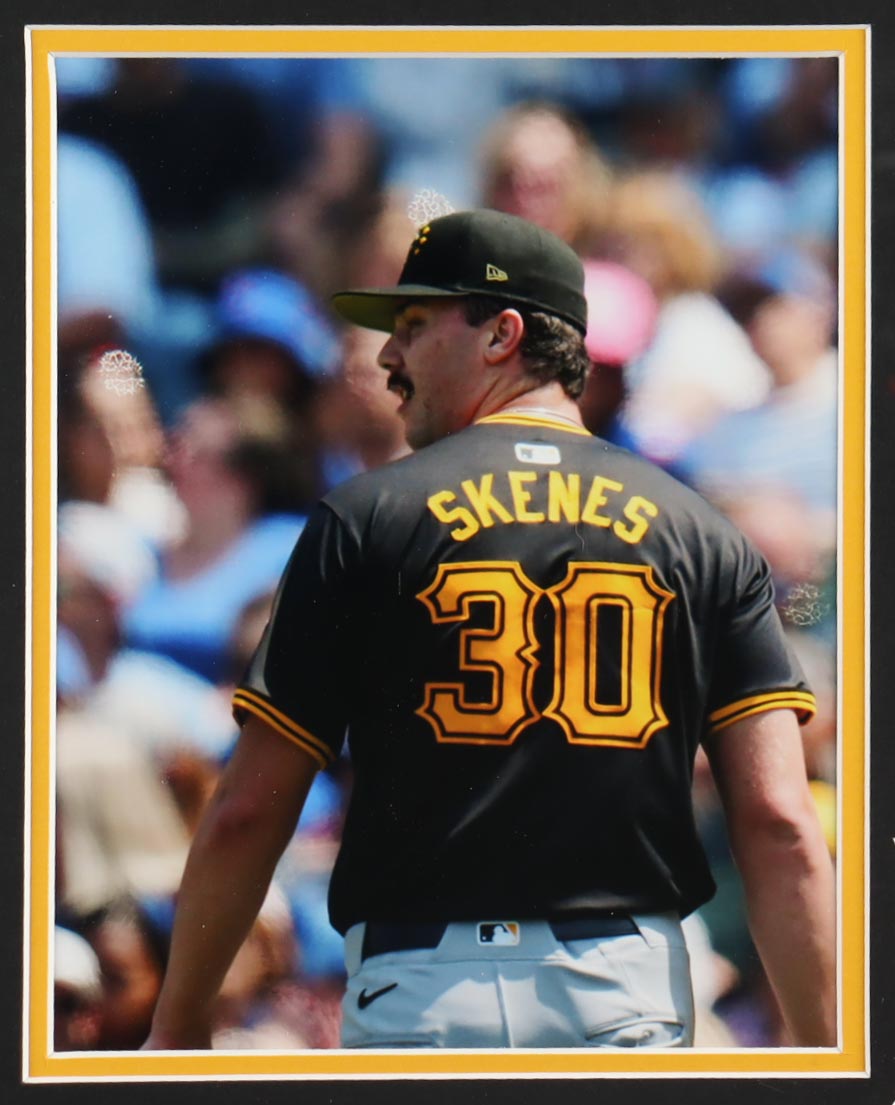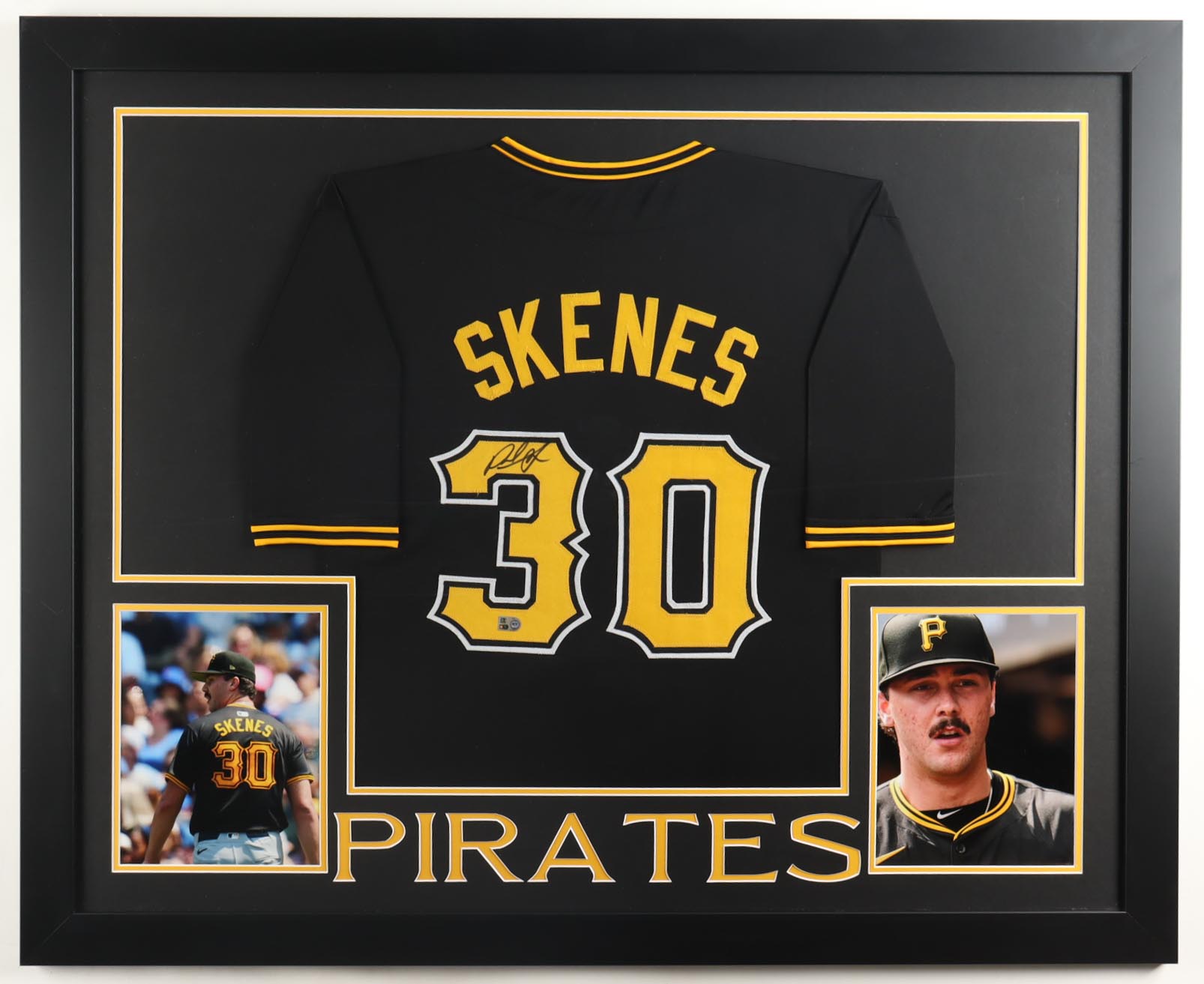 Custom frame measures approximately 35.5" x 43.5" in size and features a jersey that has been hand-signed by Paul Skenes.