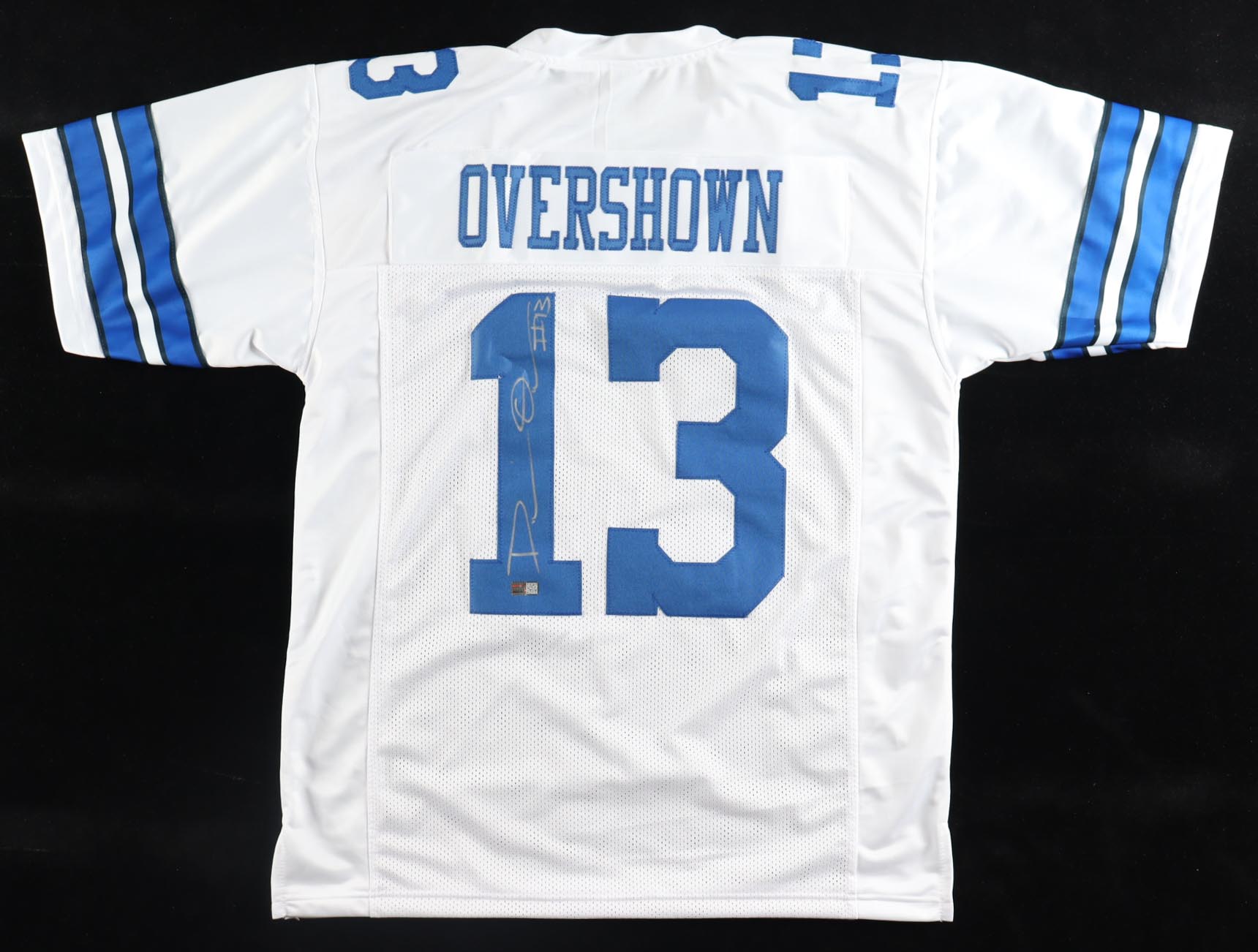 Custom jersey. Everything is sewn on, size XL. Hand-signed by DeMarvion Overshown.