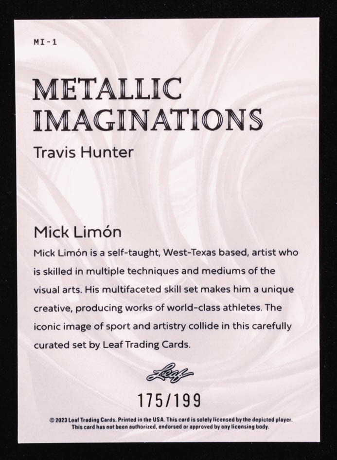Travis Hunter 2023 Leaf Metal Metallic Imaginations Prismatic Red #MI1 RC #175/199