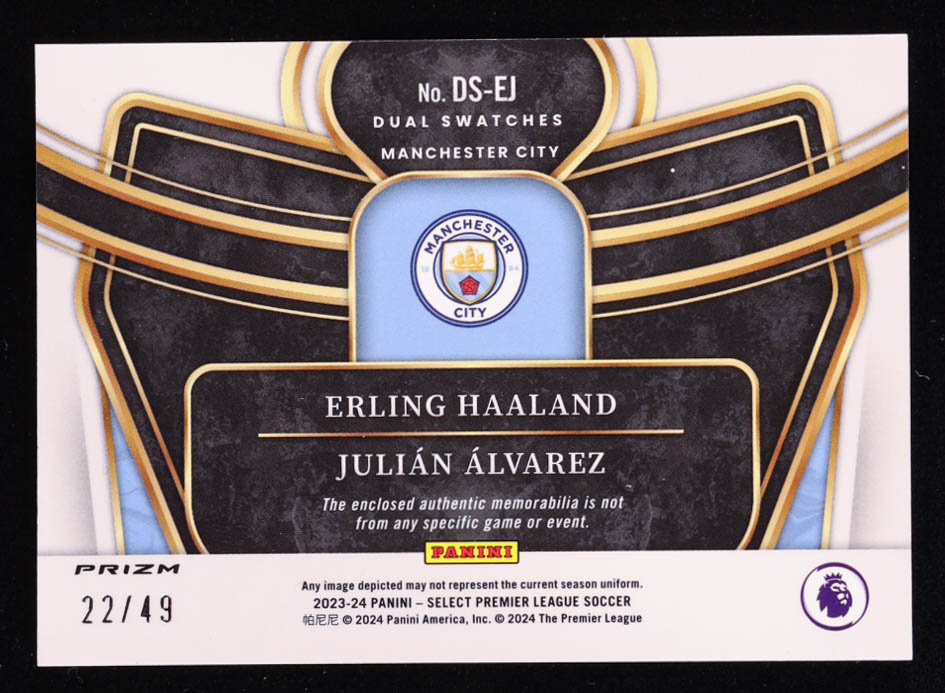 Erling Haaland / Julian Alvarez 2023-24 Select English Premier League Dual Swatches Purple #3 #22/49