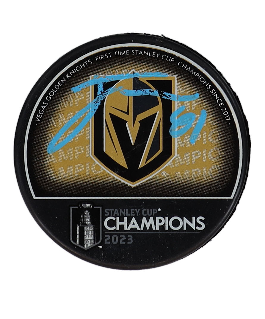 Vegas Golden Knights 2023 Stanley Cup Champions Logo Hockey Puck. Hand-signed by Jonathan Marchessault.