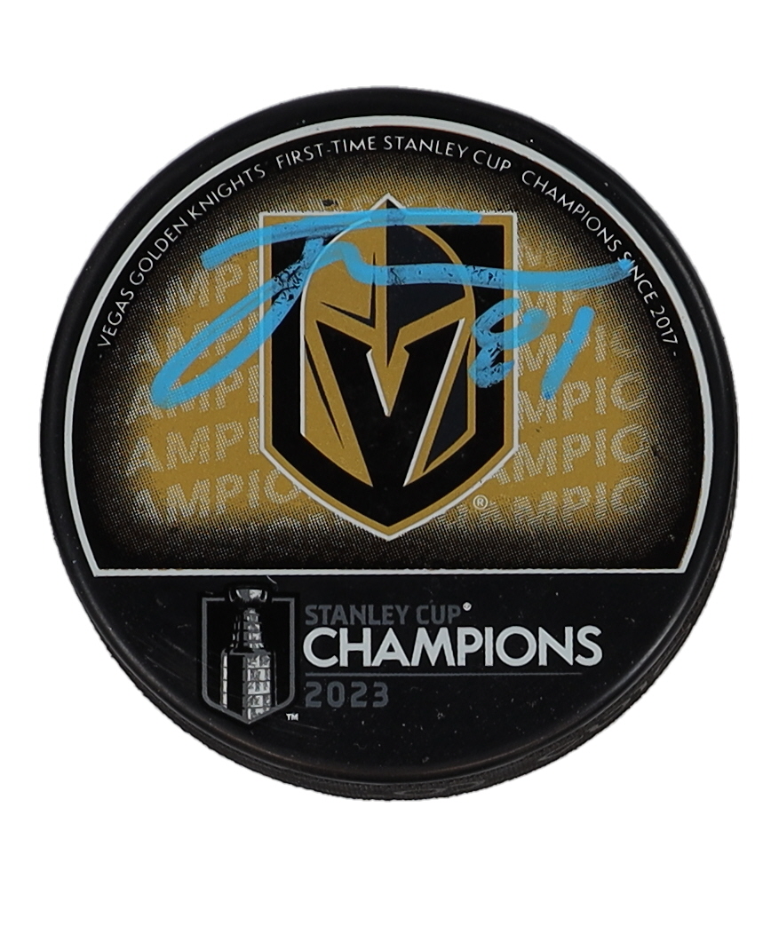 Jonathan Marchessault Signed Golden Knights 2023 Stanley Cup Champions Logo Hockey Puck (Fanatics)