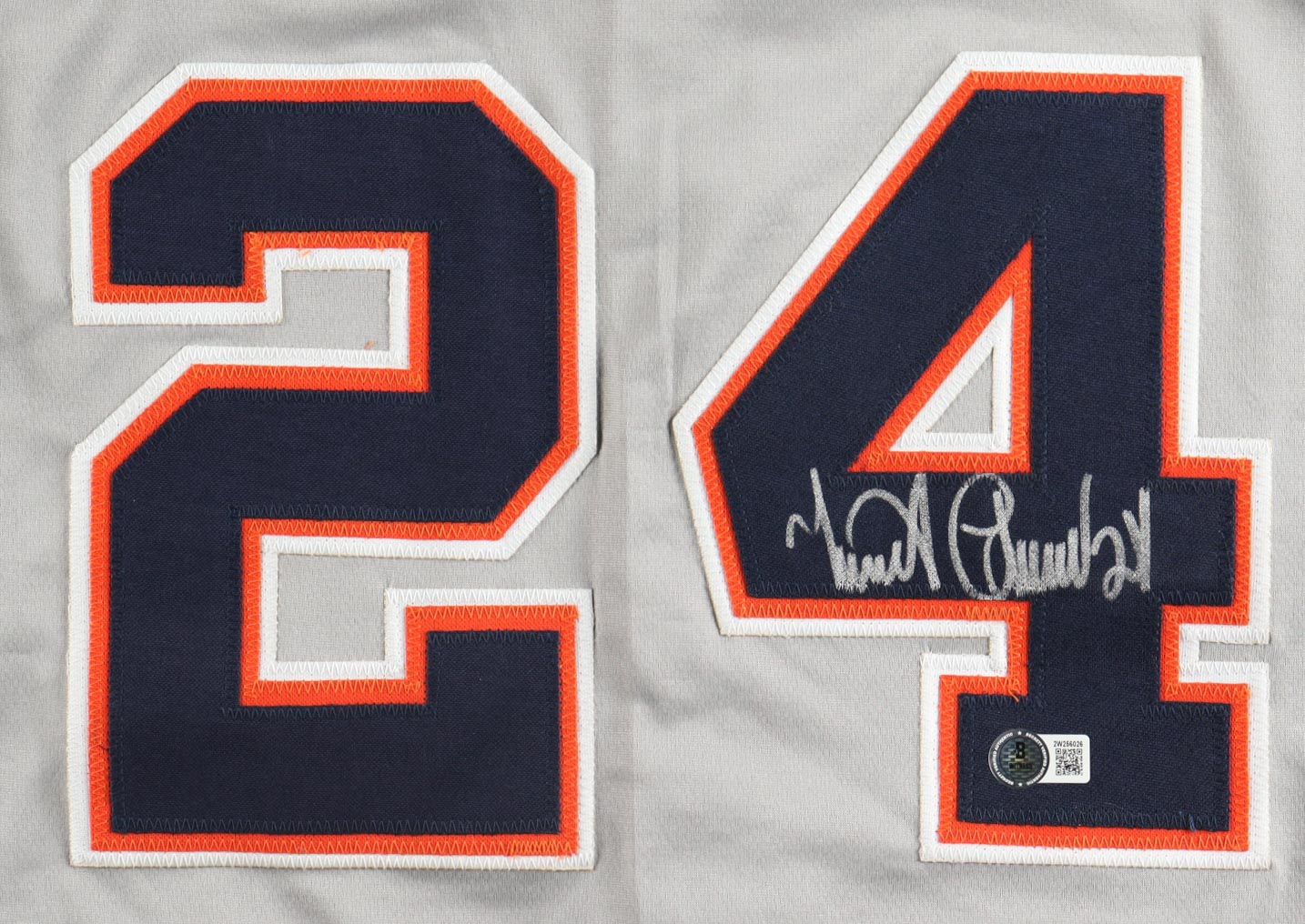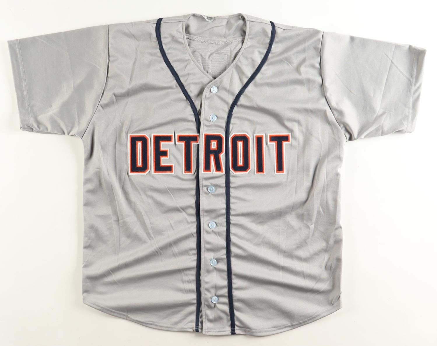 Custom baseball jersey. Everything sewn on, size XL. Hand-signed by Miguel Cabrera. Cabrera's career stats are stitched on below the reverse numbers.