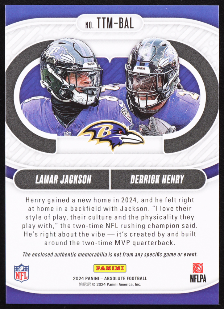 Lamar Jackson / Derrick Henry 2024 Absolute Team Tandem Materials #5 #035/199