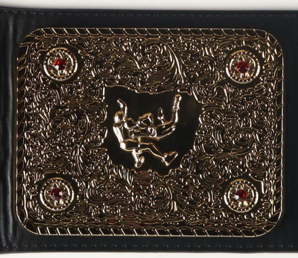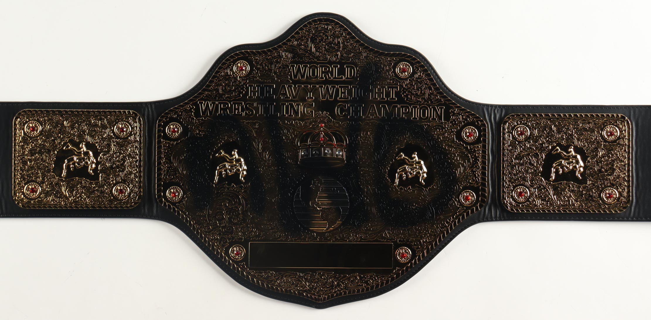 WWF Official Authentic Replica Heavyweight Championship belt measures approximately 56" in length and has been hand-signed by Hulk Hogan (HOF). Please note, there is adhesive residue and paper stains on the backside of the belt.