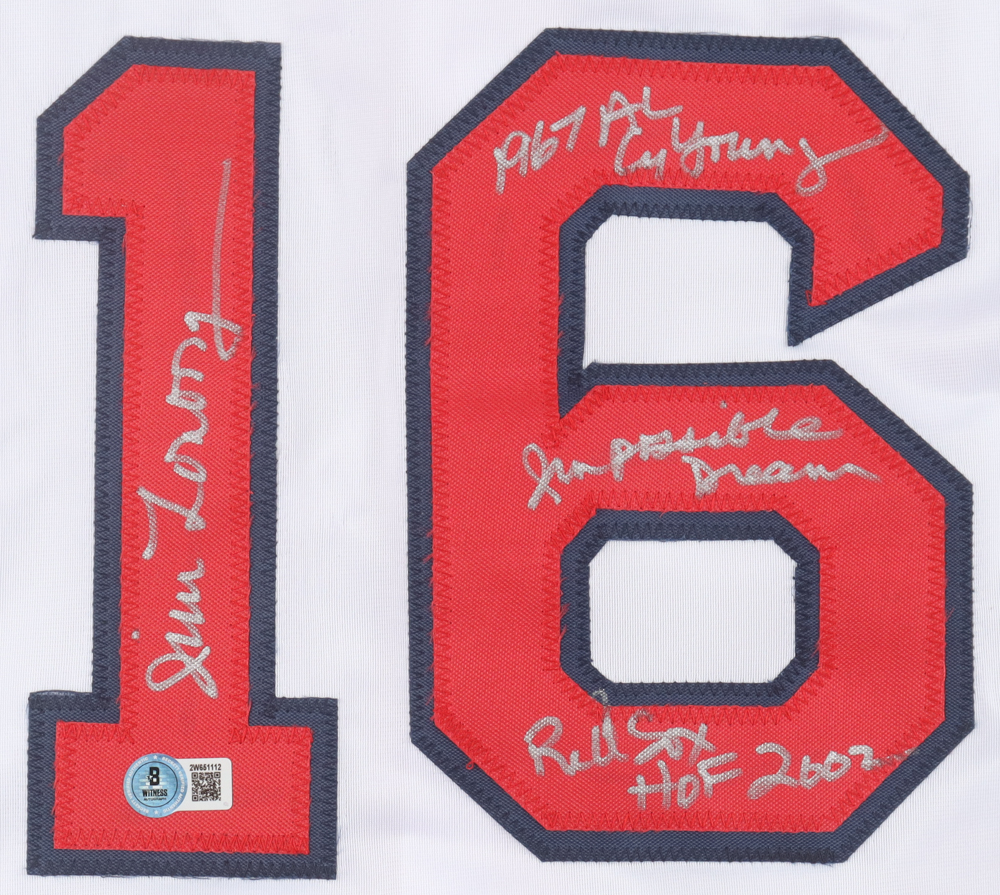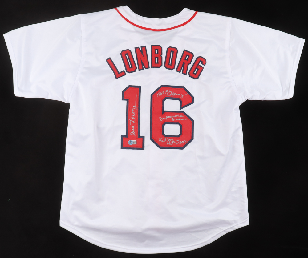 Jim Lonborg Signed Jersey Inscribed "1967 CY Young", "Impossible Dream" & "Red Sox HOF 2002" (Beckett)
