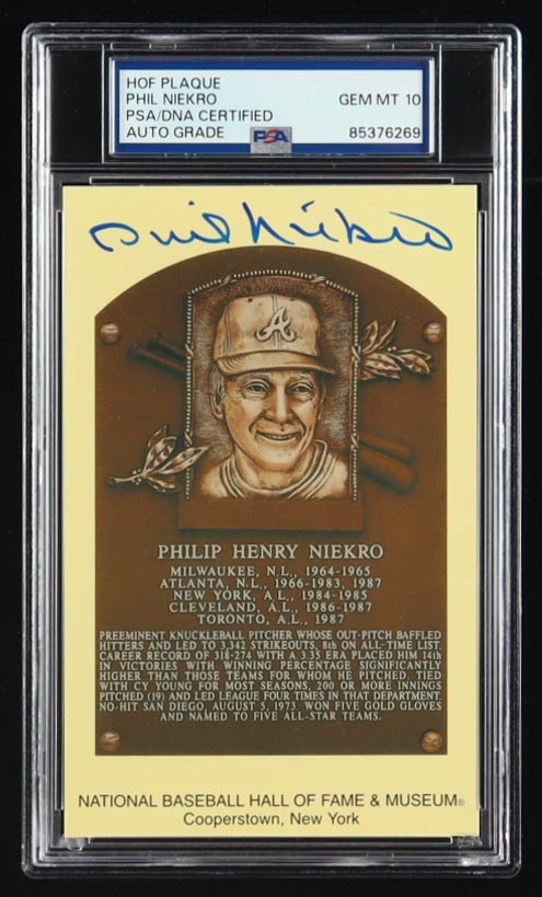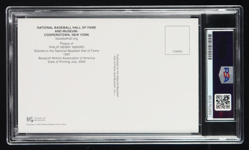Phil Niekro Signed Hall of Fame Plaque Postcard (PSA)