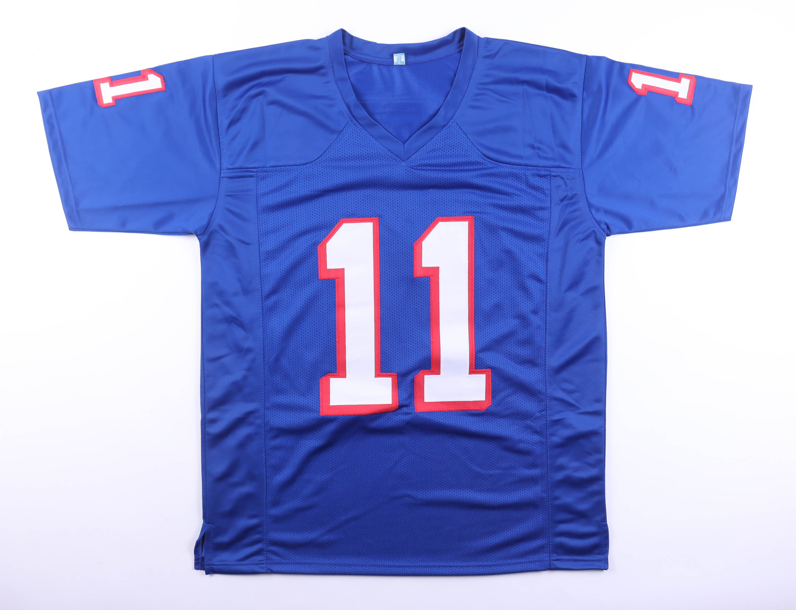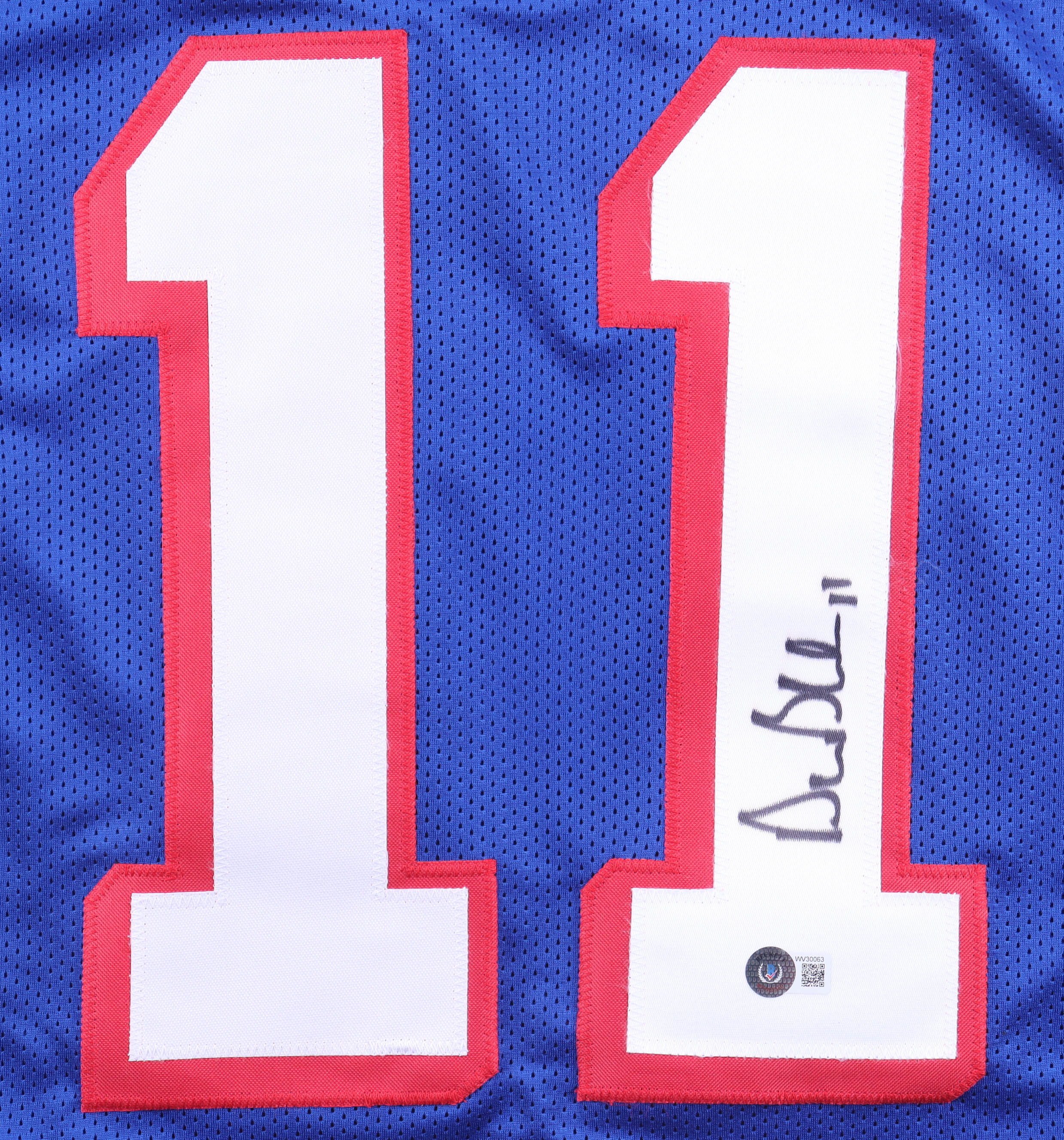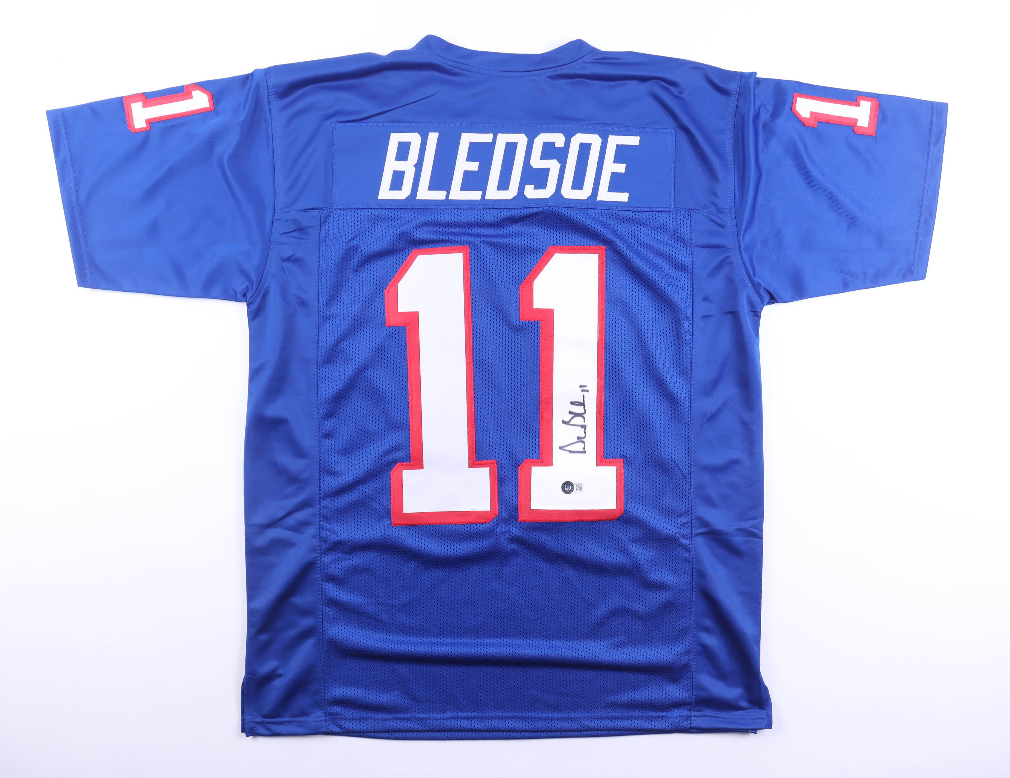 Custom jersey with everything sewn on, size XL. Hand-signed by Drew Bledsoe.
