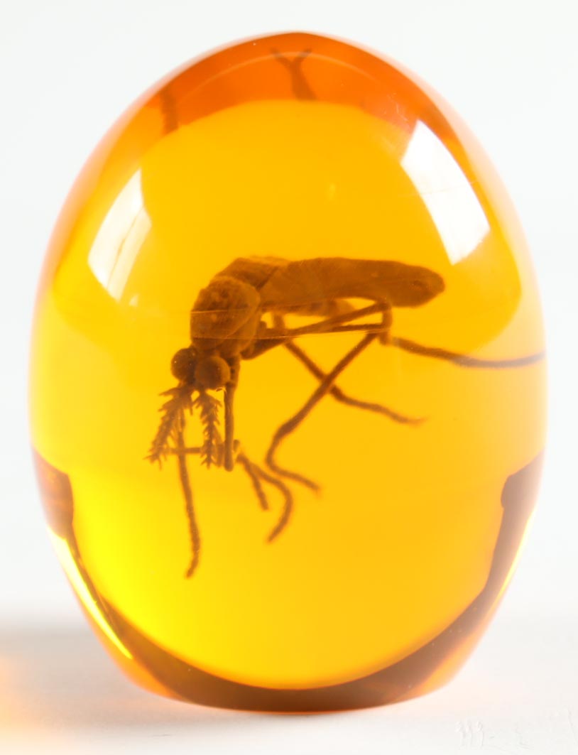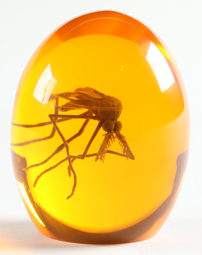 Jurassic Park Replica Prop Mosquito In Amber. Approximately 3" in height. Display case is included as show.